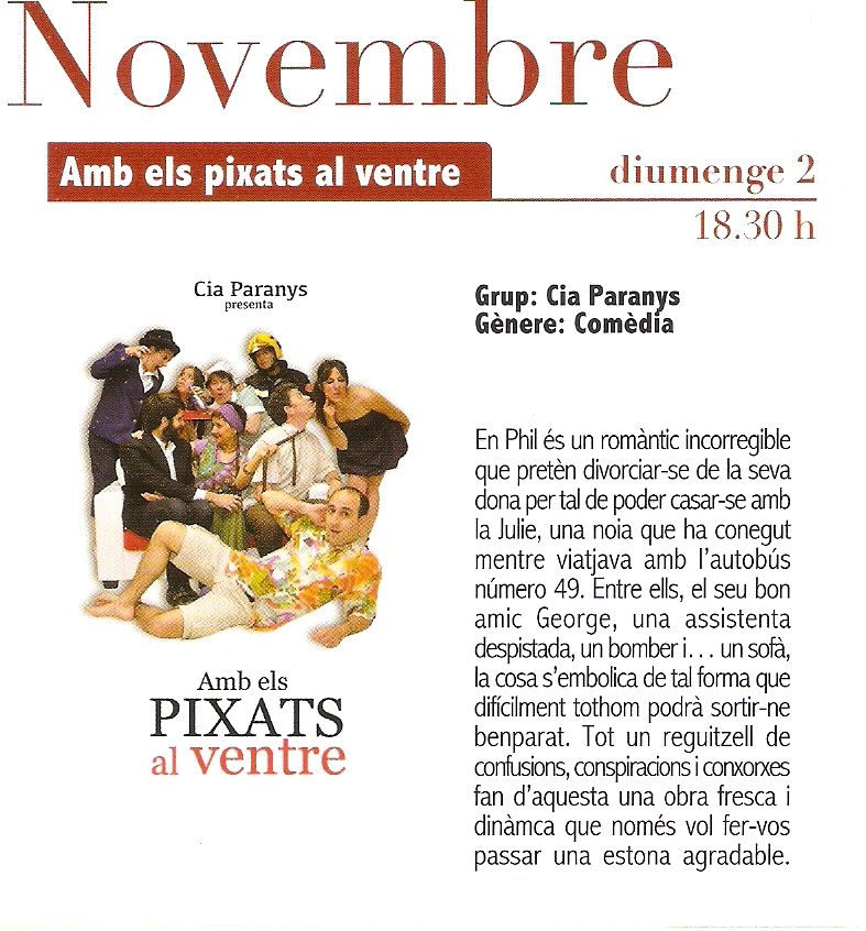 Programa d'espectacles » VII Cicle de Teatre de Tardor: AMB ELS PIXATS AL VENTRE