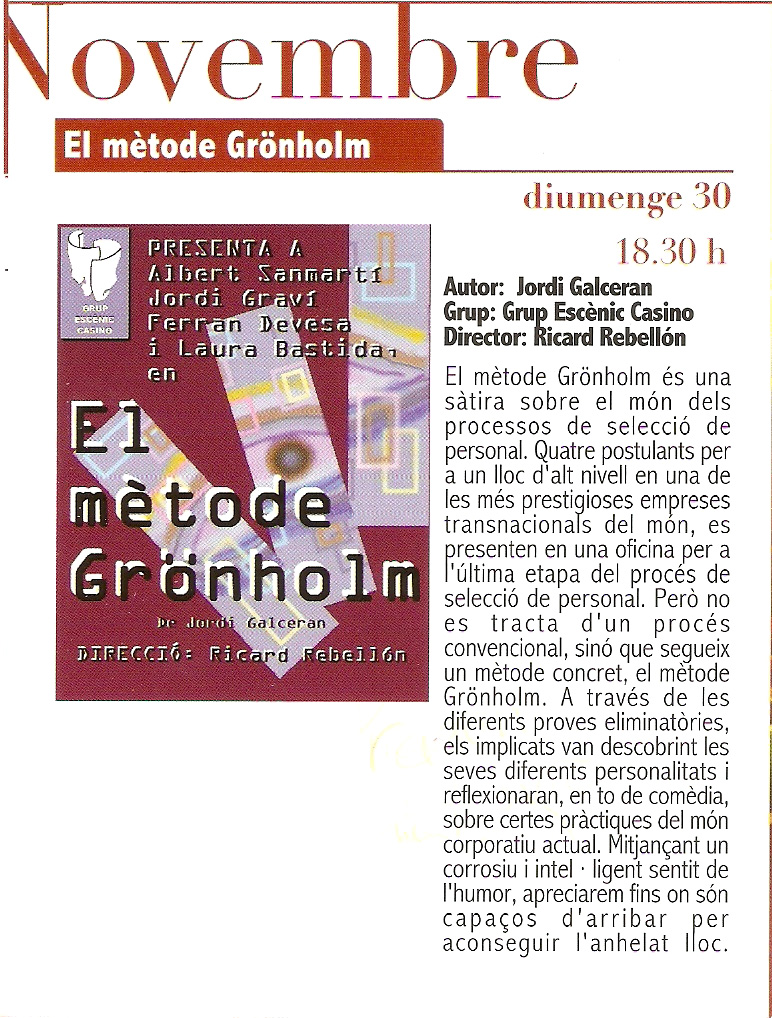 Programa d'espectacles » VII Cicle de Teatre de Tardor: EL MÃTODE GRÃNHOLM