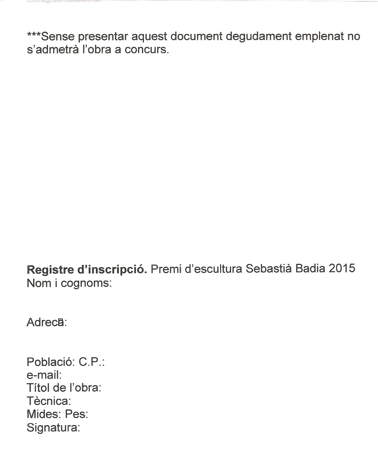 Programa d'espectacles » INSCRIPCIONS CONCURS ESCULTURA